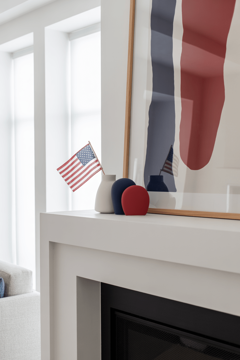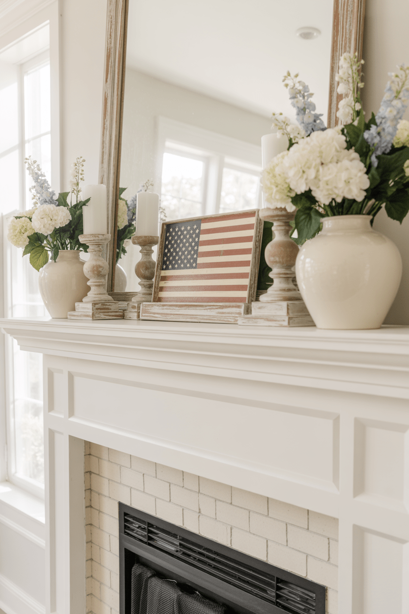 11. Neutral 4th of July mantel with subtle patriotic accents