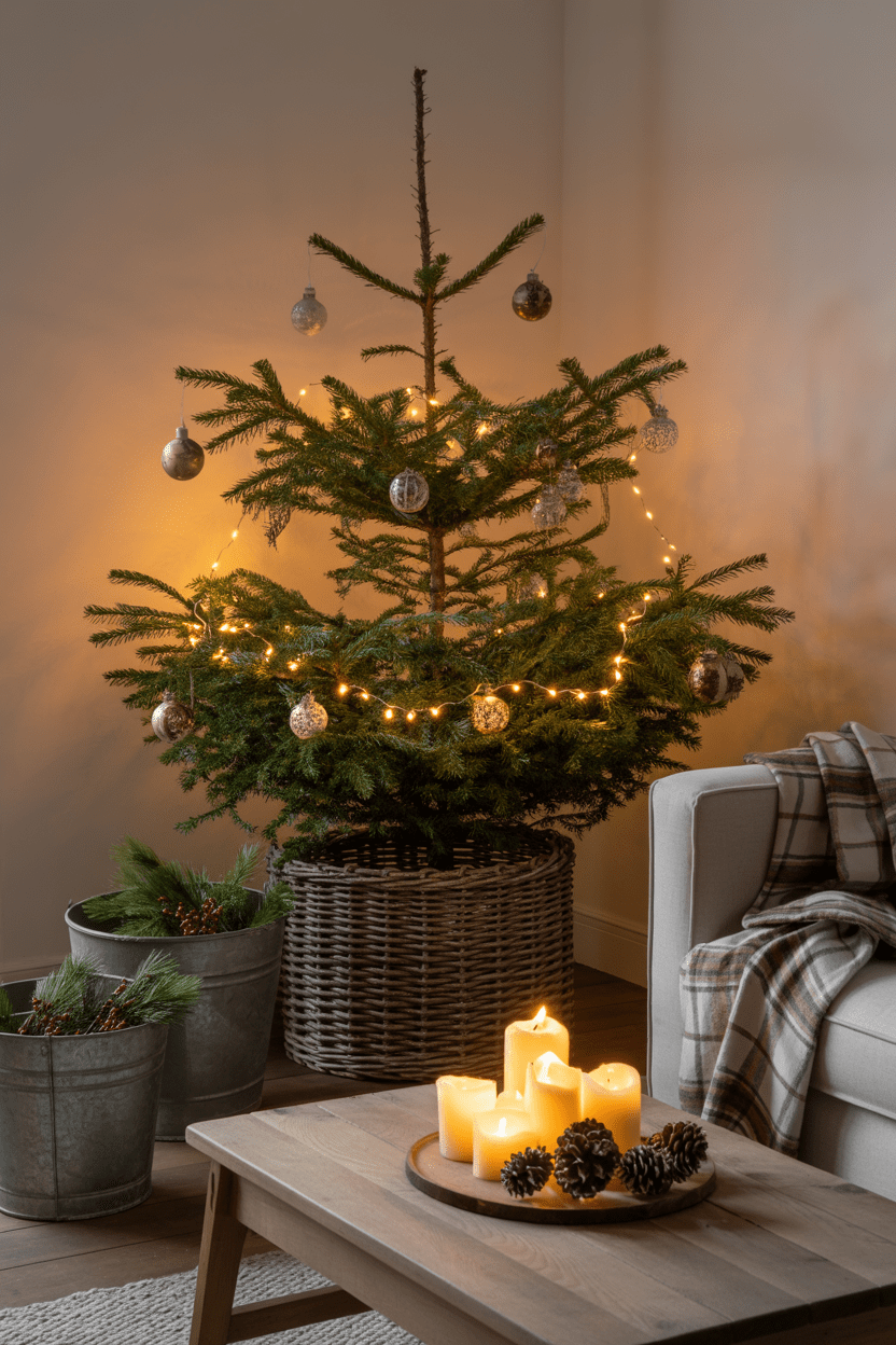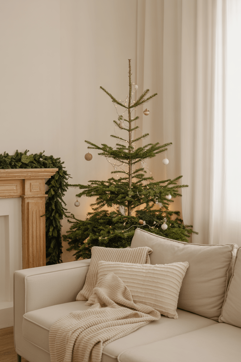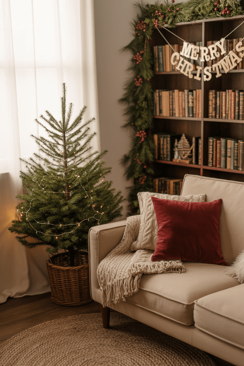 Small space? No problem. You can still enjoy a tree by choosing a slim style, a tabletop version, or even a half-tree that sits against the wall. A Christmas tree in a small living room still brings that big holiday impact without crowding the space.