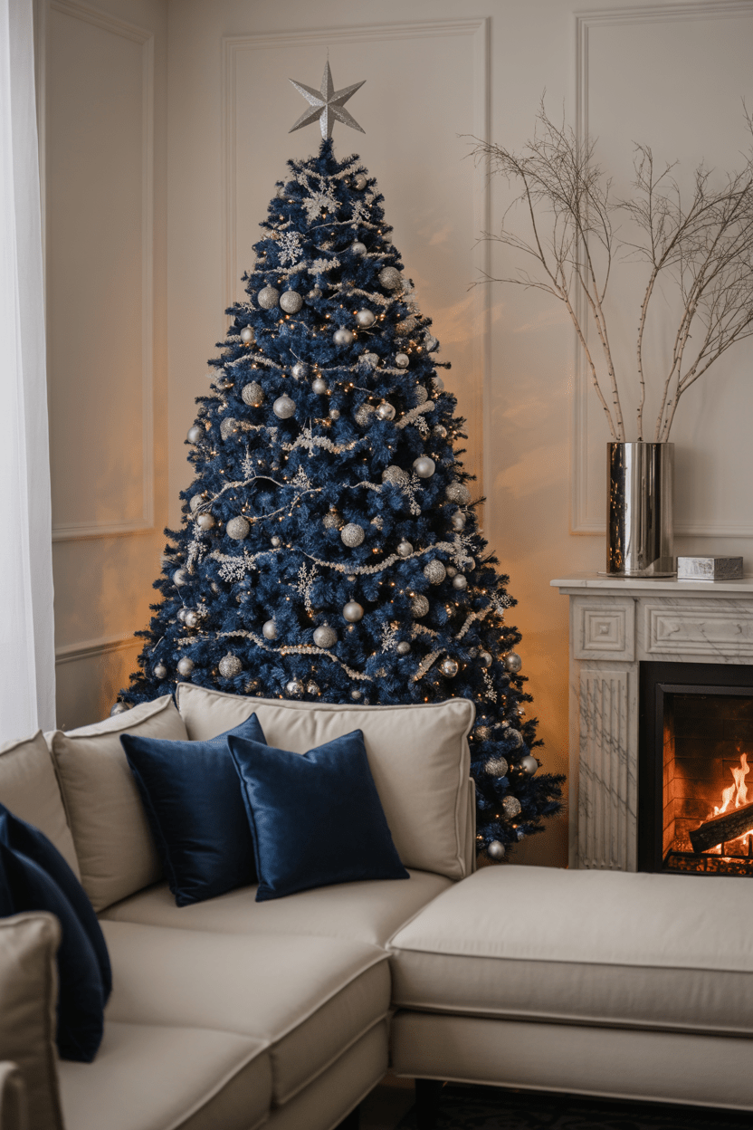 13. Blue and silver Christmas living room
