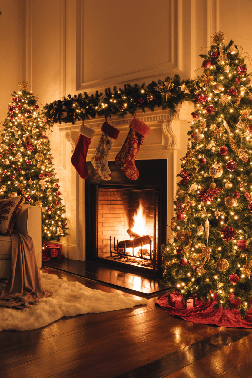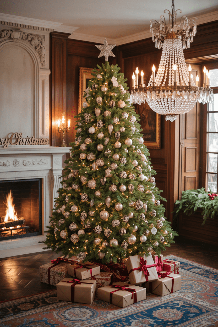 For something extra polished, try an elegant Christmas living room. Crystal ornaments, metallic garlands, and velvet accents make everything feel glamorous. Add in a statement chandelier, and you’ll have a setup that feels magazine-worthy.