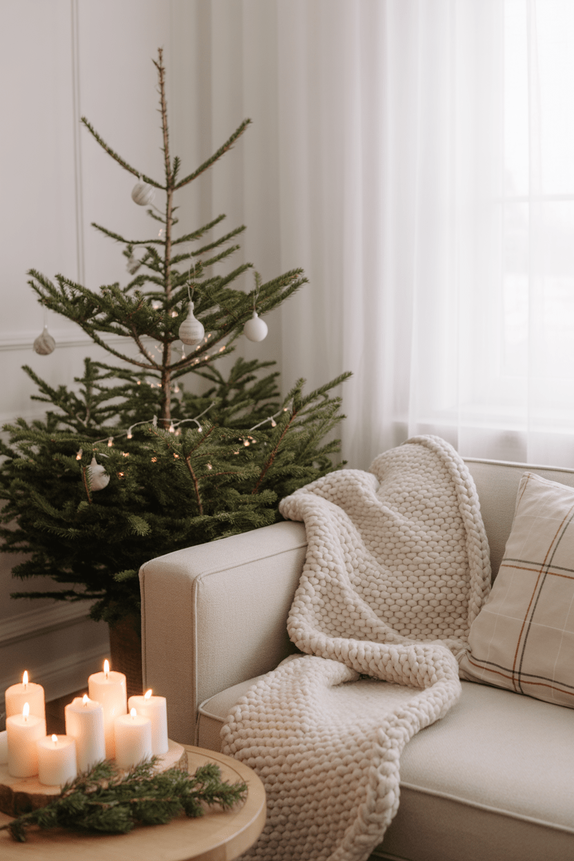 Sometimes less really is more. A minimalist Christmas living room with a simple tree, subtle greenery, and a handful of ornaments feels peaceful but still festive. It’s a great way to enjoy the holidays without the clutter.