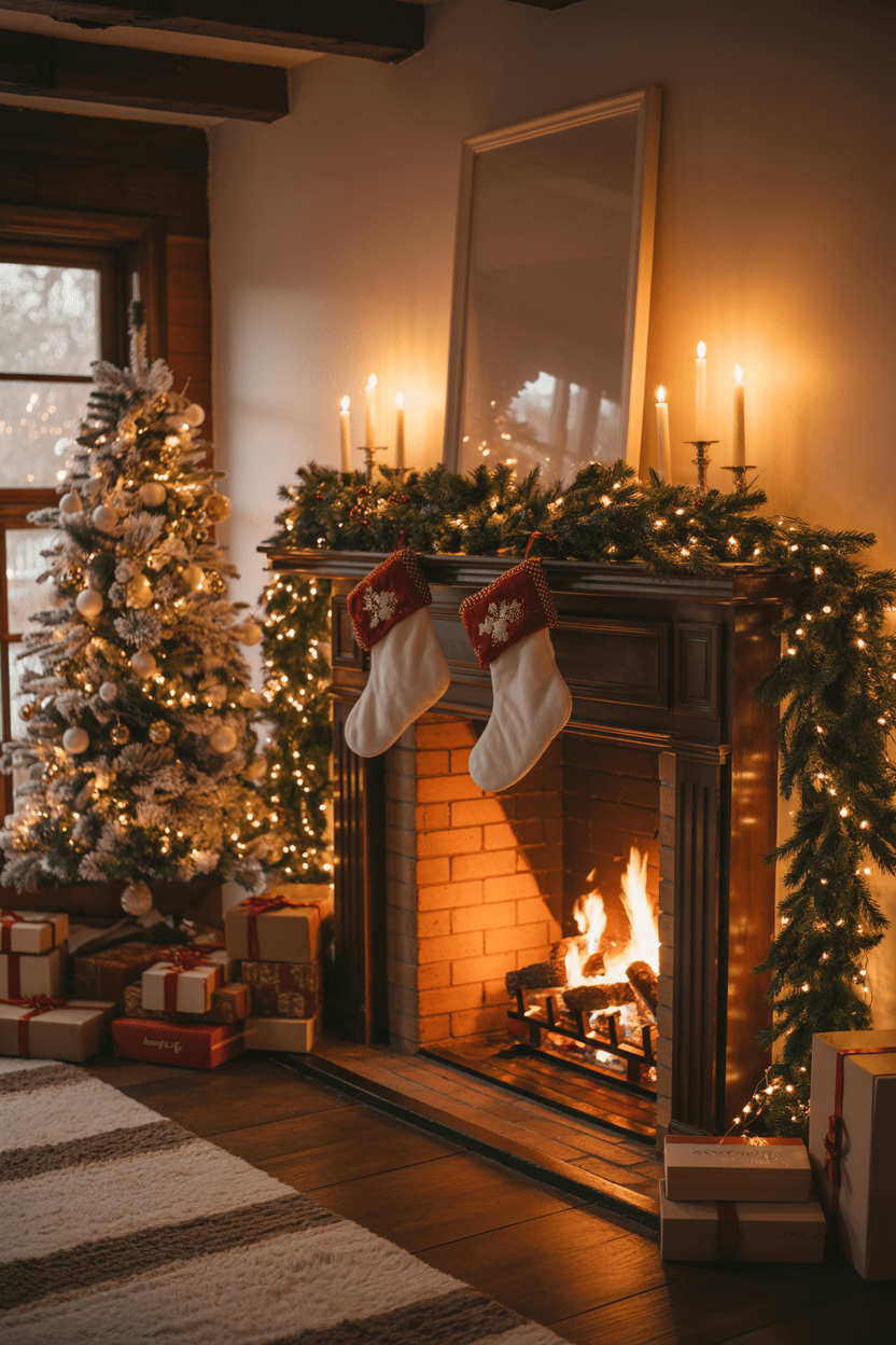 4. Cozy Christmas living room fireplace decor