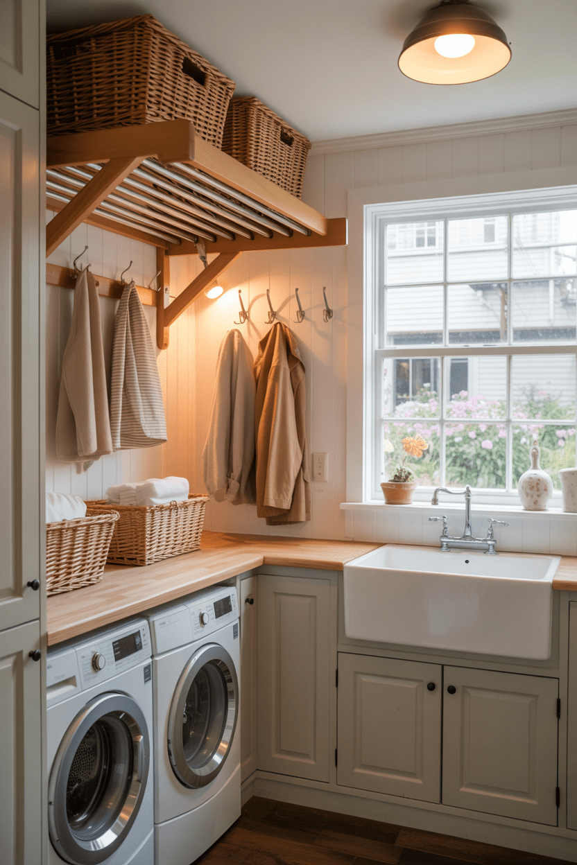 If you’re combining your laundry and mudroom, don’t forget to include a drying rack. A fold-down or pull-out rack makes it easy to hang delicate items, while still leaving plenty of room for storage. It’s a small detail that makes a big impact.