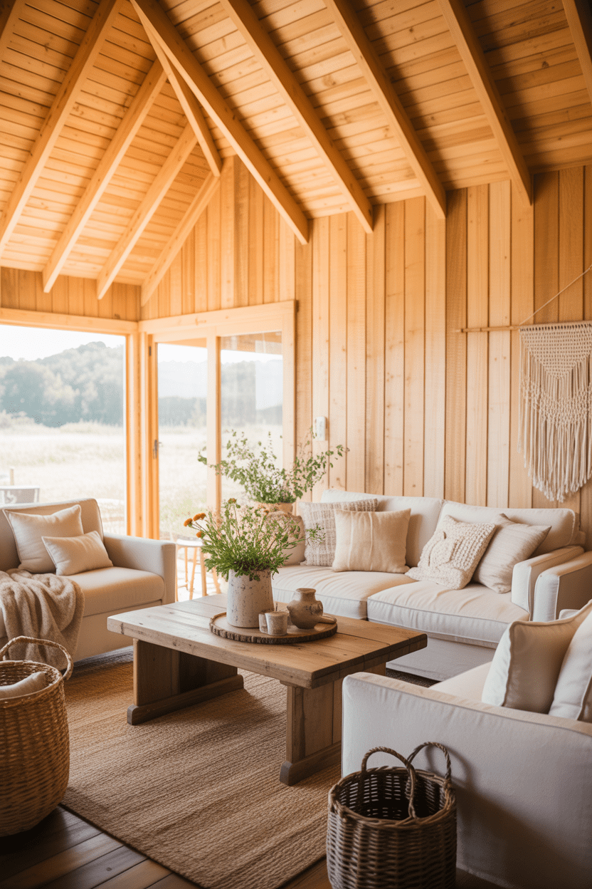 13. Wooden summer house interiors with natural materials