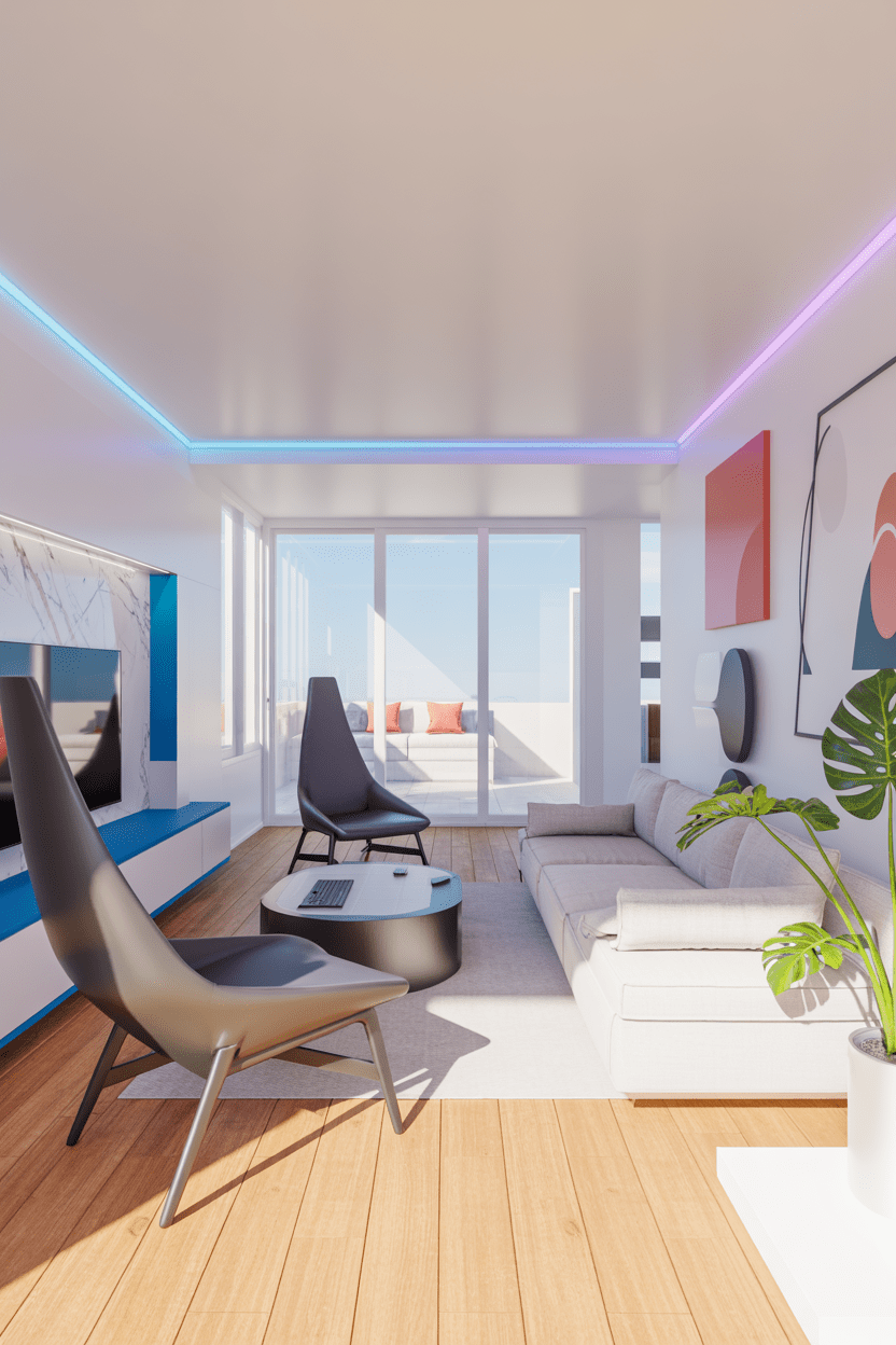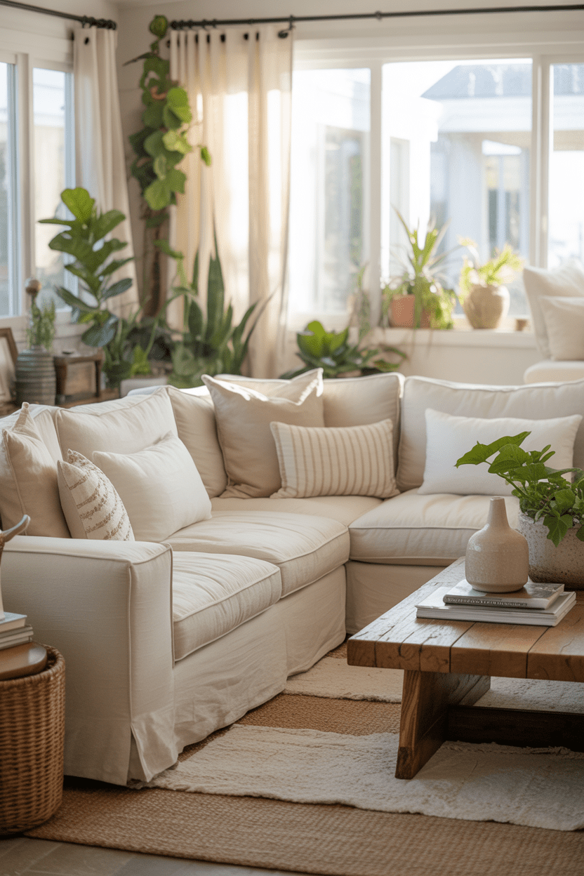 Summer house living room interiors should prioritize comfort. I love oversized sofas, layered rugs, and soft ambient lighting to create a relaxed atmosphere.