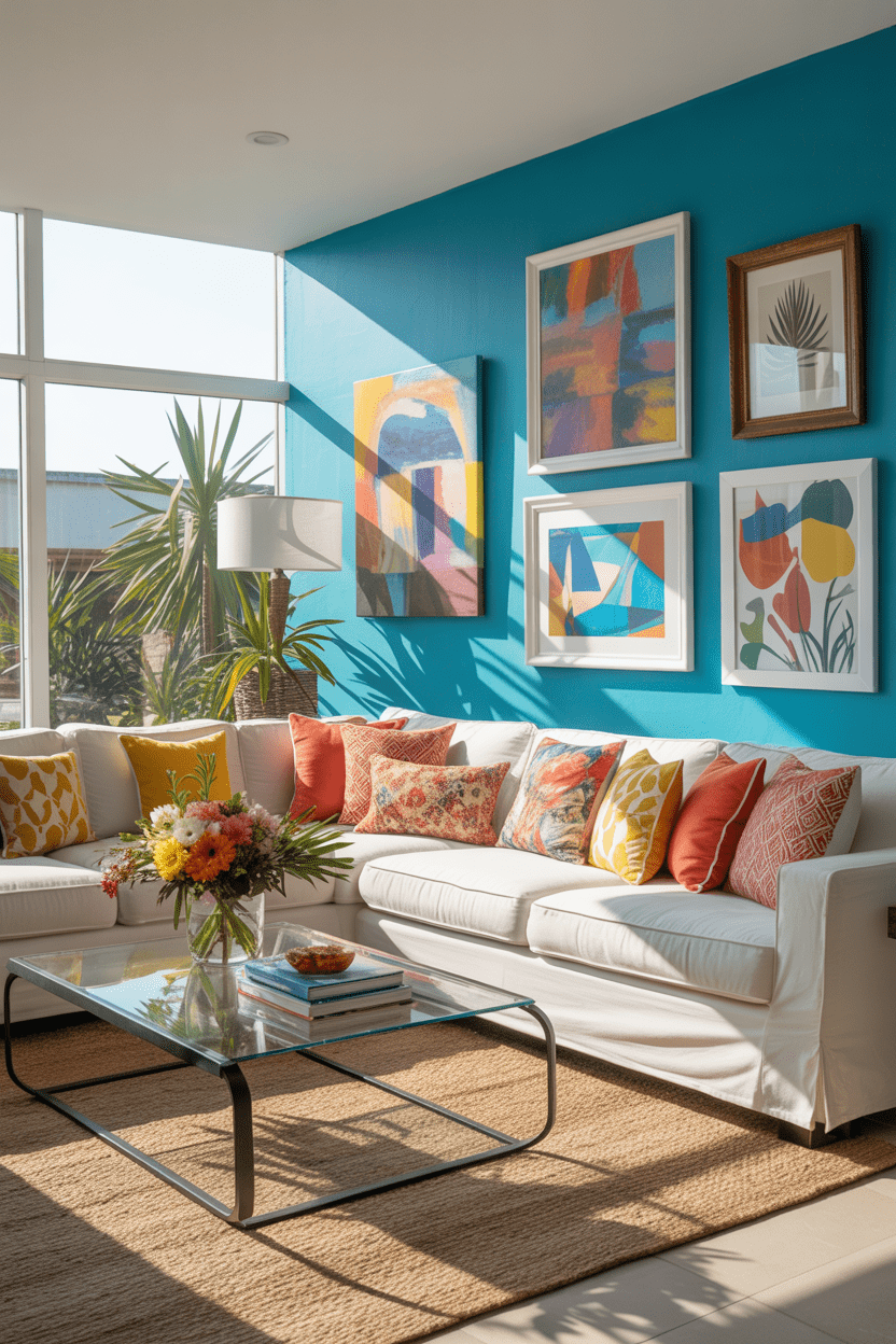 Colorful summer house interiors inspired by house of color summer trends are cheerful and expressive. Add colorful artwork, painted accent walls, or vibrant decor accessories.