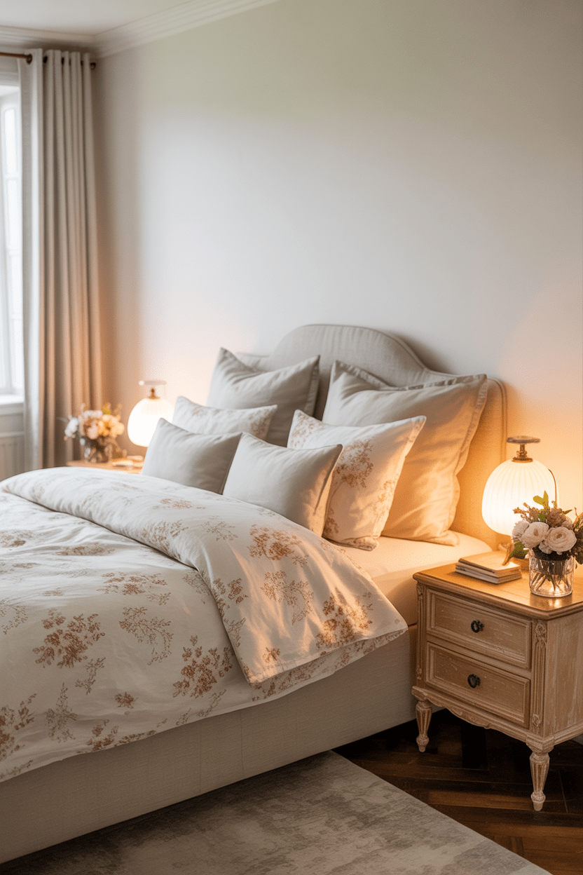 A summer house bedroom should feel like a peaceful retreat. I love soft floral linens, vintage-style bedside tables, and warm ambient lighting. Keep clutter to a minimum so the bedroom feels restful and calming.