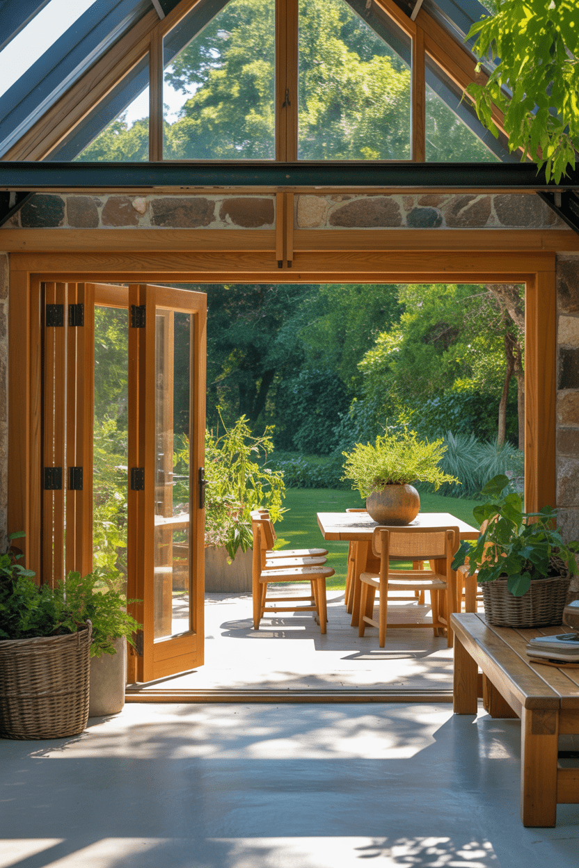 Garden summer house interiors should blur the line between inside and outside. I always suggest glass doors, indoor plants, and natural stone or wood finishes. Position seating toward garden views whenever possible.