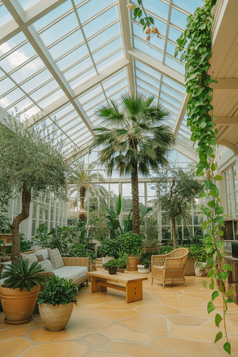 1. Indoor garden conservatory with lush greenery