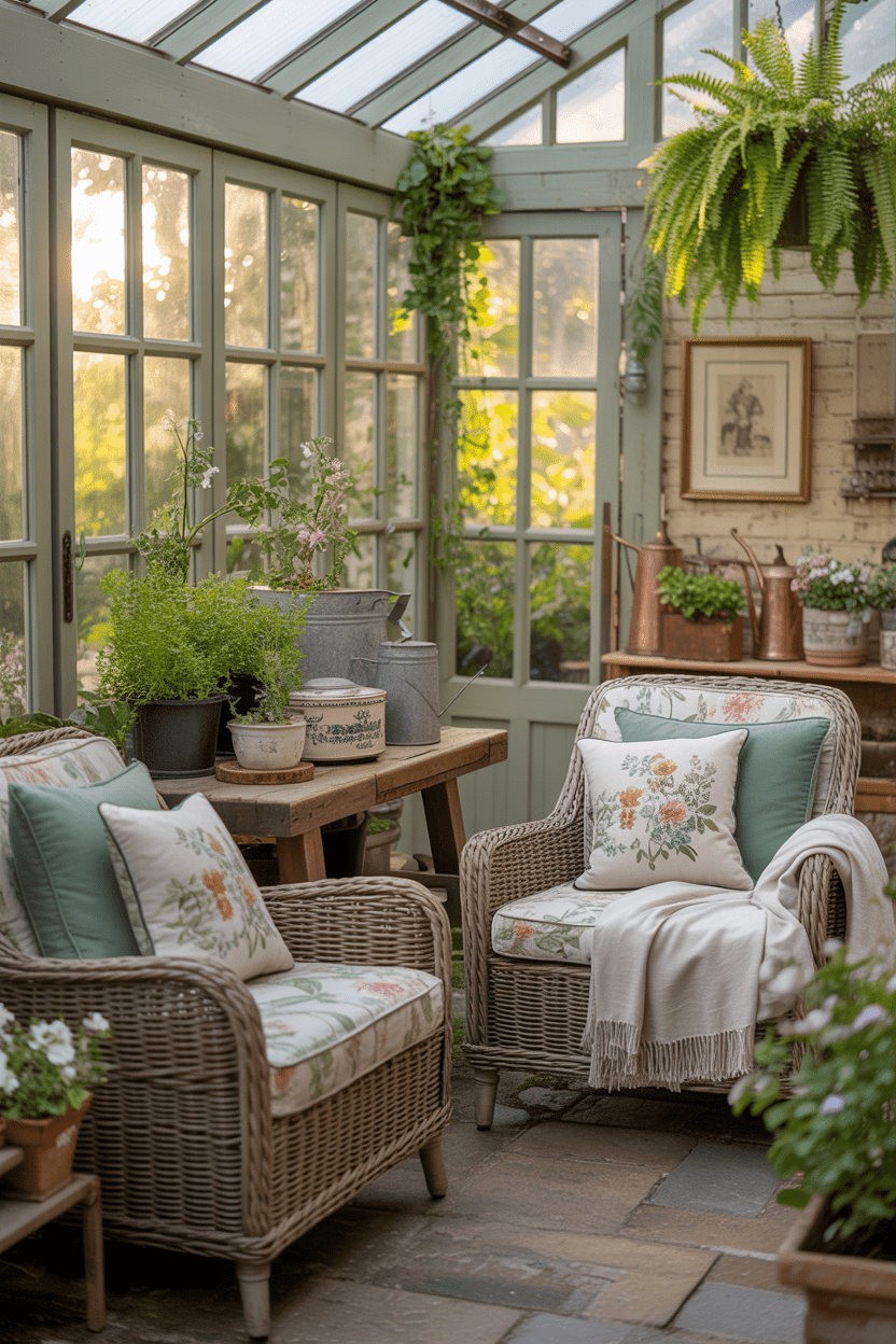 13. Cottage-style conservatory with rustic charm