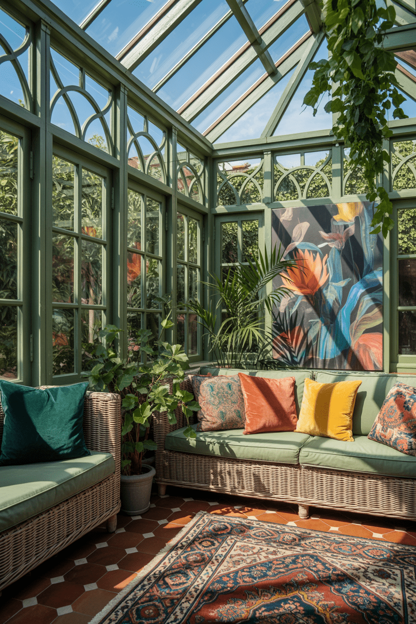 14. Colorful conservatory with painted frames