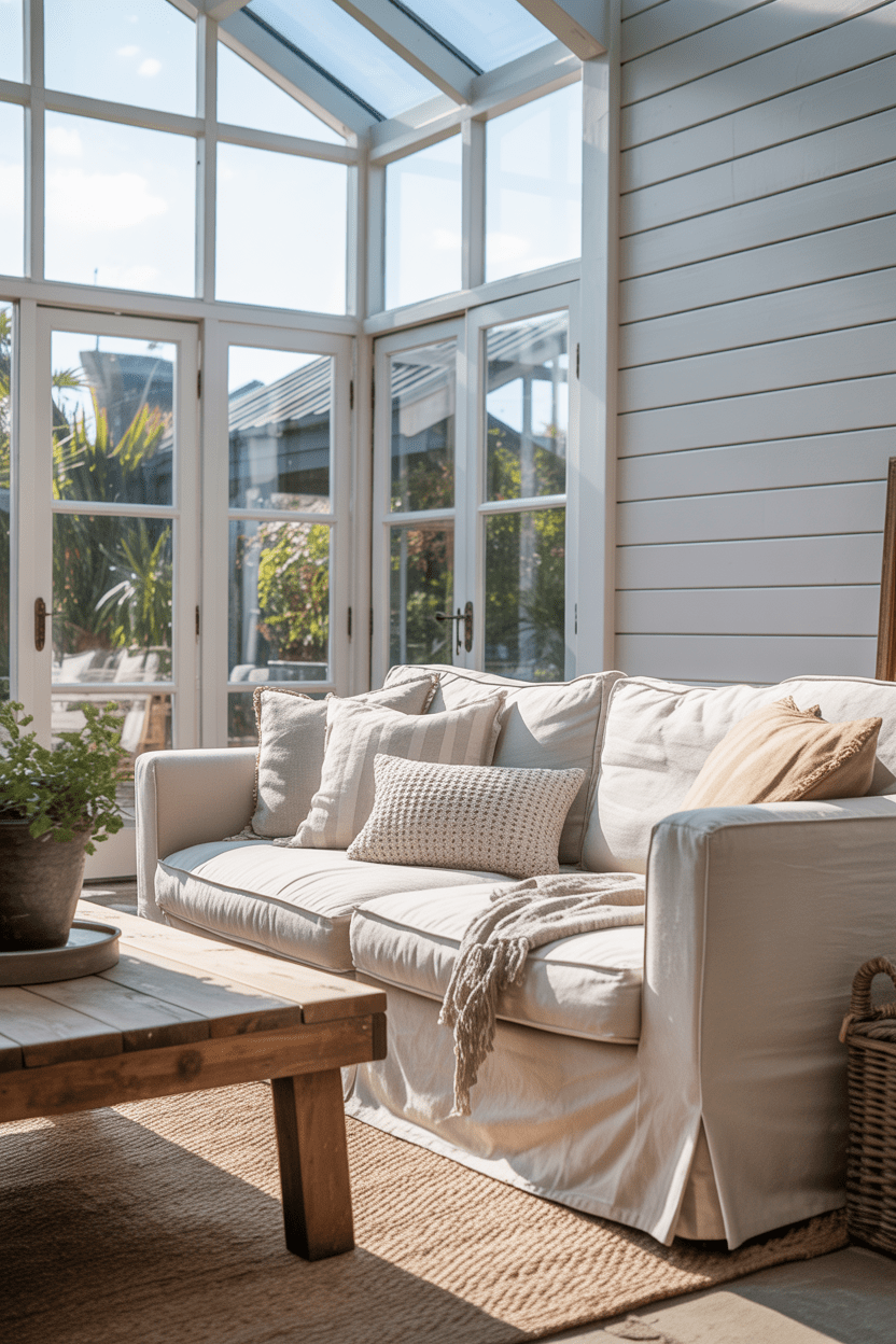 18. Farmhouse conservatory with neutral tones