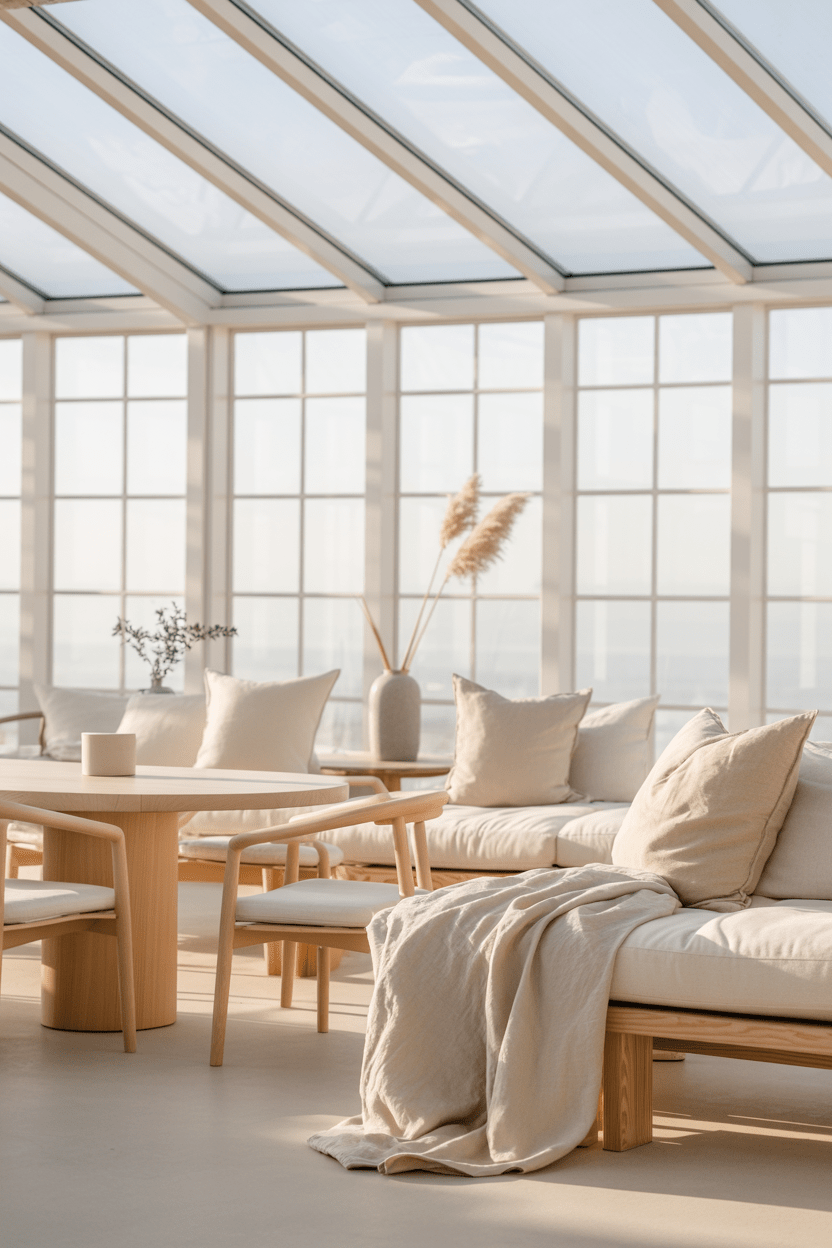 20. Scandi or Japandi-inspired conservatory with minimal styling