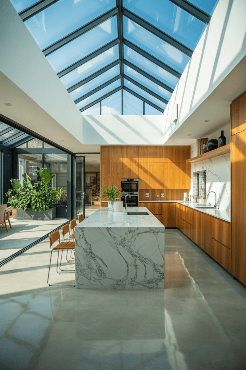 A kitchen conservatory extension is a total game changer if you love open-plan living. Opening up a kitchen into a conservatory extension floods the space with natural light and makes even smaller kitchens feel expansive. I always suggest cohesive flooring between the kitchen and conservatory so it reads as one seamless room. Add greenery, warm wood tones, and thoughtful conservatory lighting ideas to make the space feel intentional rather than like an afterthought.